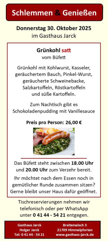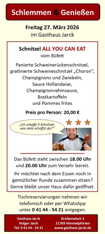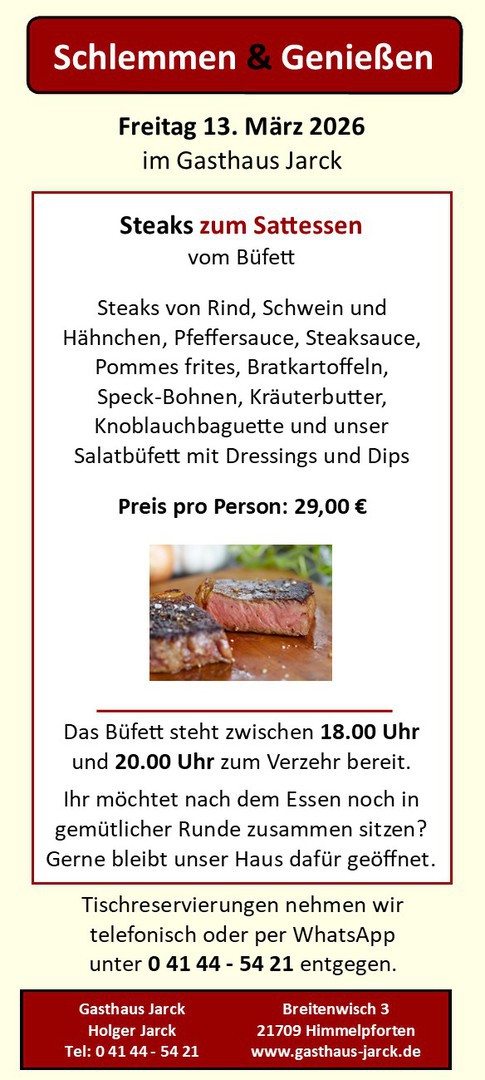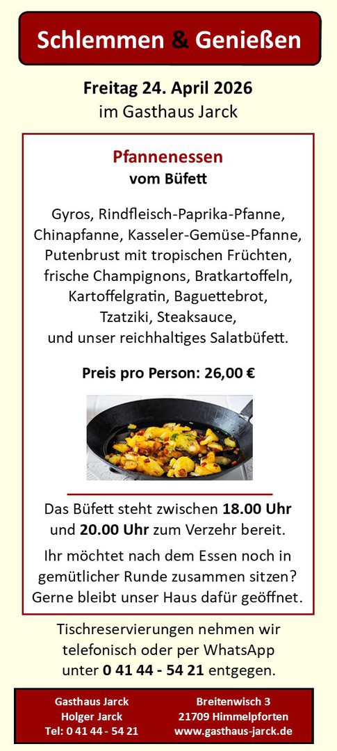 Von Zeit zu Zeit bieten wir verschiedene Büfetts zum Schlemmen bei uns im Gasthaus an.
